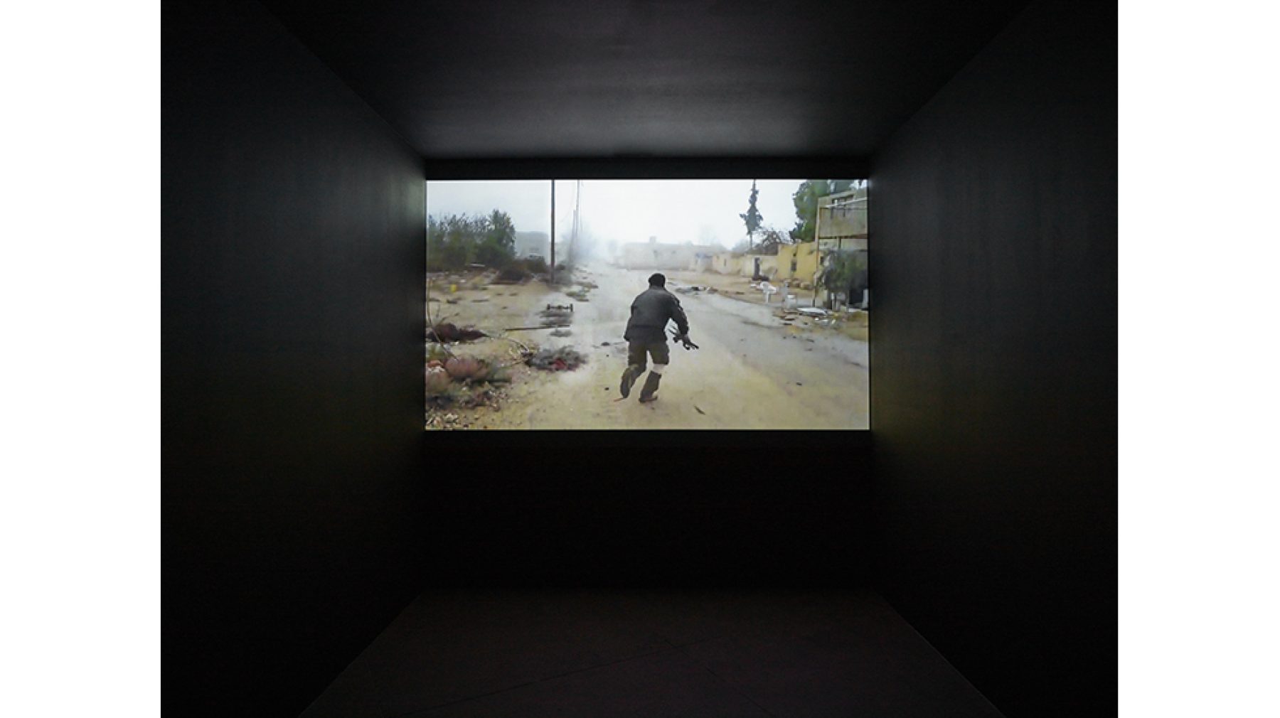 Dara Birnbaum, Arabesque, 2011. 4 channel video installation; 4 audio stereo channels; 6 min 30 sec. Installation view Marian Goodman Gallery, New York, 2011. Courtesy of the artist and Marian Goodman Gallery.