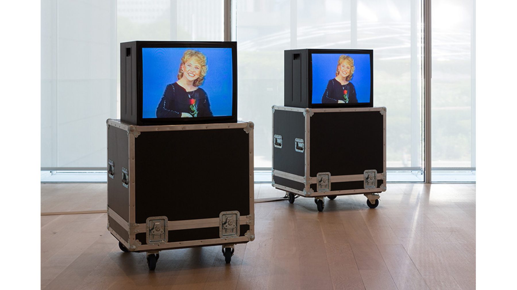 Dara Birnbaum, Kiss the Girls: Make them cry, 1979. Two-channel video, color, stereo, 6 min 26 sec. Installation view Art Institute of Chicago, 2017. Courtesy of the artist and Marian Goodman Gallery.