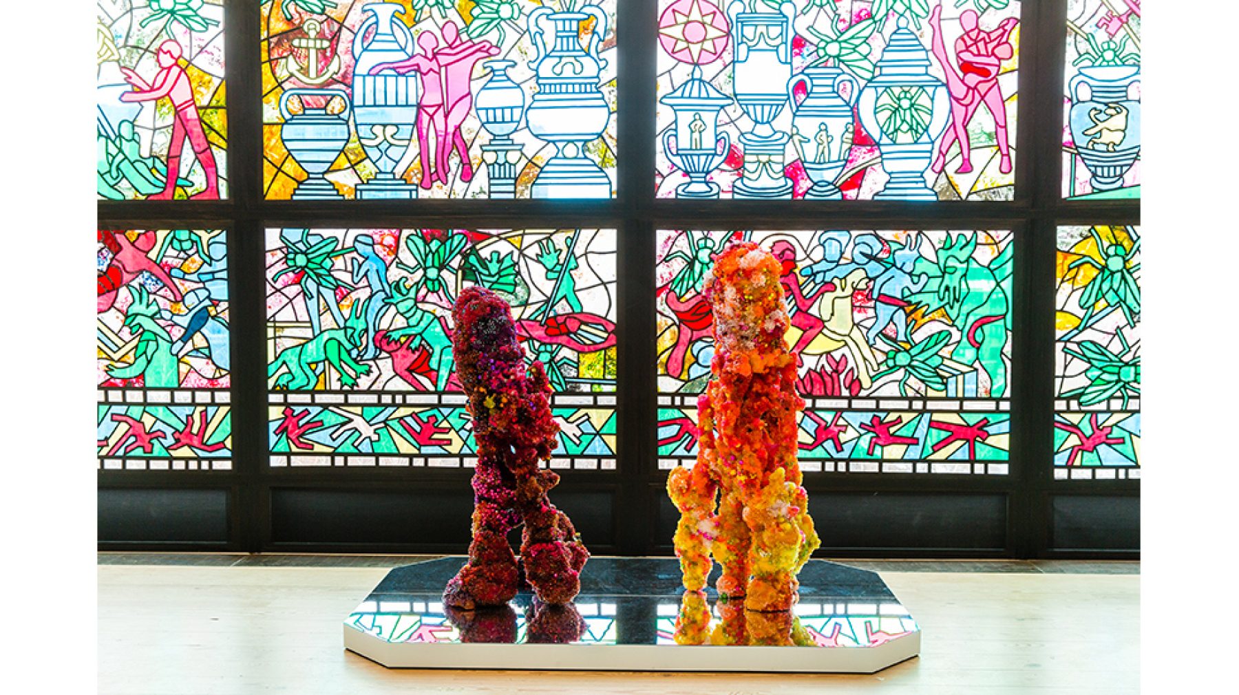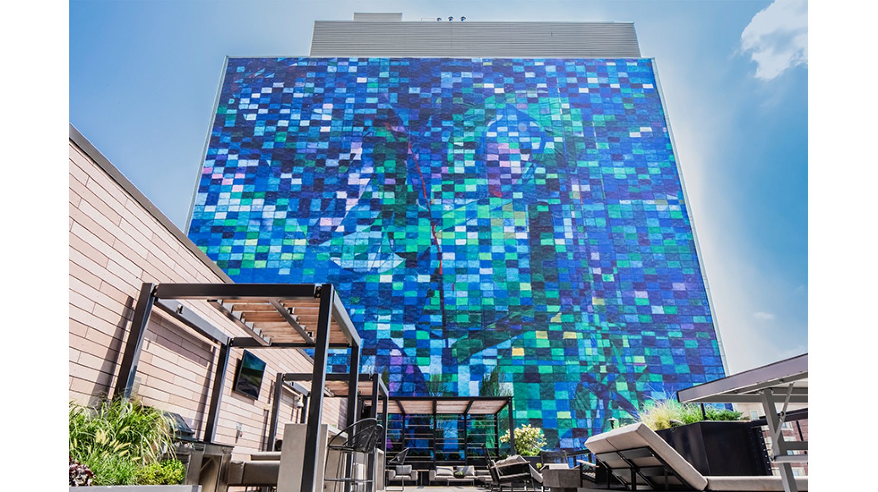 On view now in Boston’s Fenway is de Nieves’s mural All is One (2018), which depicts the seminal moment of Saint George slaying the Dragon in the mythical legend that illustrates resilience in the face of seemingly insurmountable obstacles. With the story serving as an ongoing metaphor for personal empowerment and service to one’s community more broadly, de Nieves has continuously explored this tale and its themes throughout his career. Originally produced as a watercolor on paper, All is One will come to life at a monumental scale through a building wrap that will cover the entire surface of the wall, standing at 143 feet high.