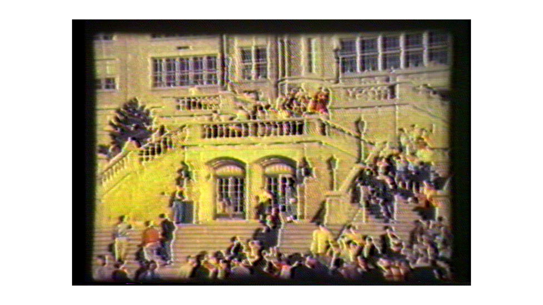 Tony Conrad, still from In Line, 1985. Video transferred to digital, color, 7 min. Courtesy Tony Conrad Archives and Greene Naftali, New York.