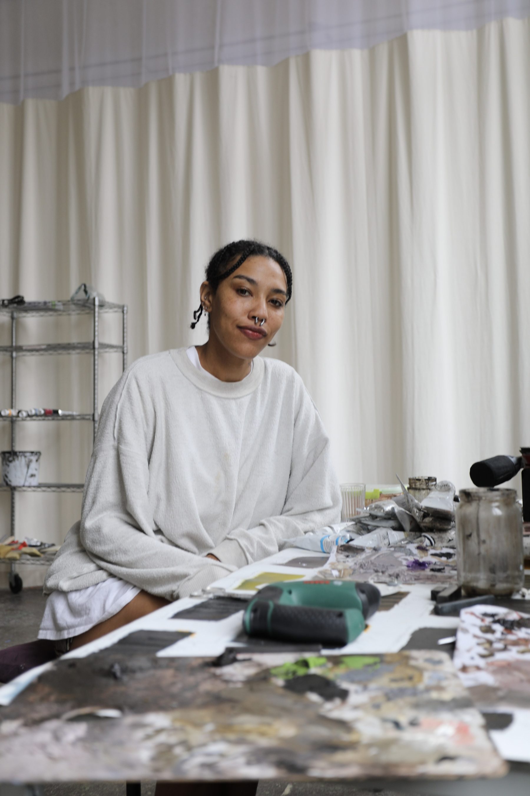 Janiva Ellis (b. 1987, Oakland, California) lives and works in New York City. Solo exhibitions include “Sussudio Pseudo Soothe,” Cabinet Gallery, UK (2024); “Hammer Projects: Janiva Ellis,” the Hammer Museum in Los Angeles (2023); “Rats,” The Institute for Contemporary Art, Miami (2021), and “Tip Drill,” 47 Canal, New York (2019). She has participated in group exhibitions such as the Whitney Biennial, New York (2019); and the New Museum Triennial, New York (2018); as well as a two-person exhibition with Donald Rodney at Arcadia Missa, London (2022). In 2018, Ellis was the recipient of the Rema Hort Foundation Emerging Artist Grant and the Stanley Hollander Award. Her works are in the permanent collections of the Whitney Museum of American Art, New York; the Rubell Museum, Miami; the Baltimore Museum of Art, Baltimore; the Dallas Museum of Art; Dallas; and the Institute of Contemporary Art, Miami.