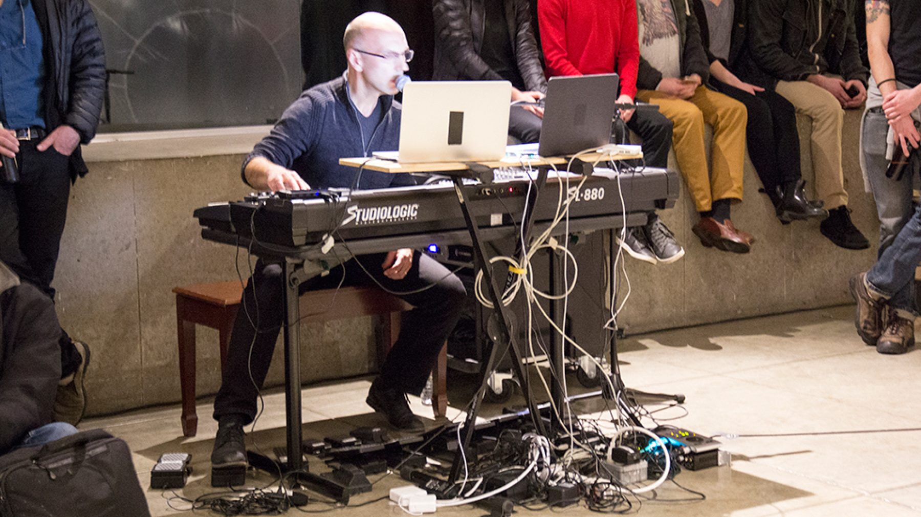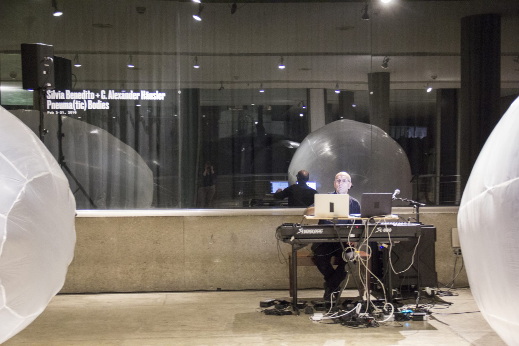 Performance by Hans Tutschku in response to Pneuma(tic) Bodies exhibition. Apr 3, 2016, Carpenter Center for the Visual Arts, Harvard University.