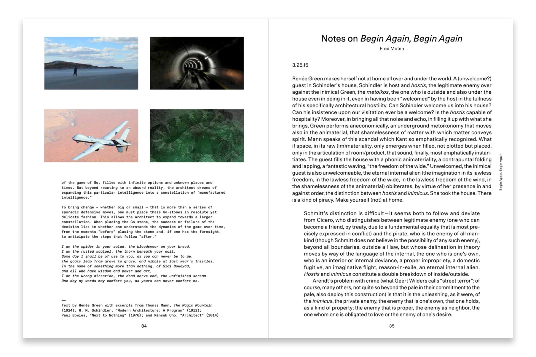 Renée Green: Pacing is a meditation spurred by inhabiting an architectural icon—Le Corbusier's Carpenter Center—while exploring the historical and institutional legacies of modernism's other forms, including cinema, visual art, poetry, music, and literature. Included in the book are reflections on a sequence of exhibitions that preceded Pacing: Facing in Toronto; Tracing in Como, Italy; Placing in Berlin; Spacing in Lisbon; and Begin Again, Begin Again in Los Angeles. Green will be joined in conversation by Gloria Sutton, catalogue contributor and the Carpenter Center Scholar-in-Residence over the course of Green’s Pacing residency.