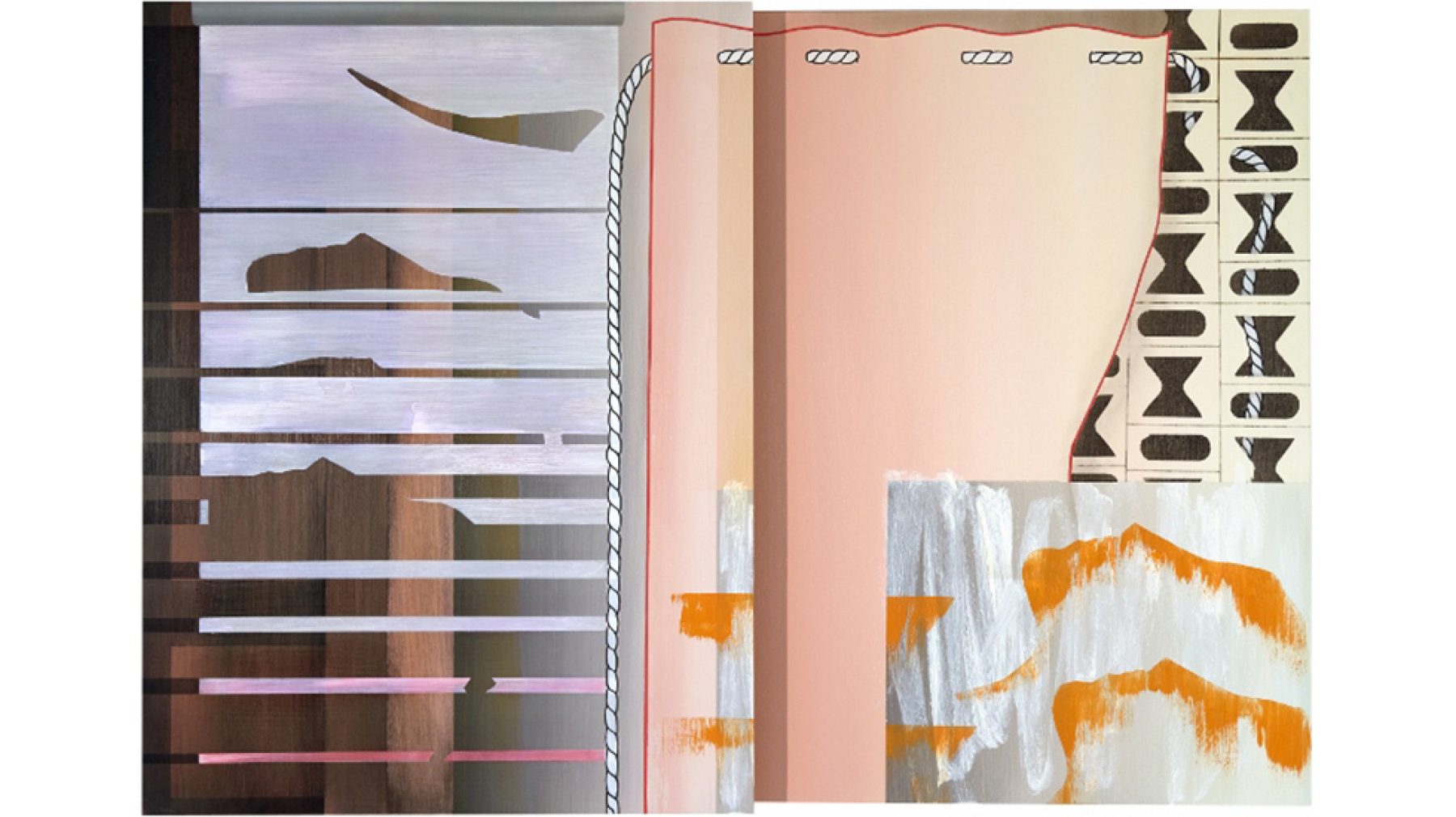 Sonia Almeida, Portable Document/ Annotations, 2018. Oil on aluminum and plywood, sliding mechanism. Closed 32 x 24 in. Open 32 x 46 in. Courtesy of the artist.